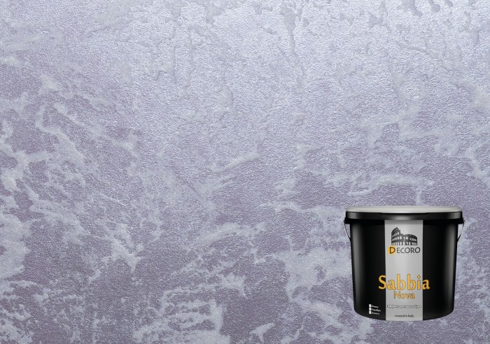«Sabbia Nova» декоративное перламутровое покрытие на акриловой основе. Используется для высококачественной внутренней отделки интерьеров. Позволяет создавать оригинальный рисунок с эффектом песчаной бури. Элегантный декоративный эффект достигается благодаря нежным перламутровым отблеском хаотично разбросанных по поверхности мазков.